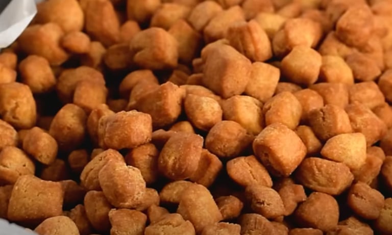 Chin chin is a popular, everyday fried snack in Nigeria and other West African countries. It's made from a dough of flour, sugar, butter, and milk, which is then cut into small shapes and deep-fried. The snack is known for its crunchy texture and semi-sweet flavor.